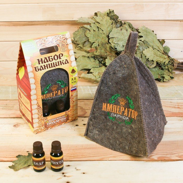 Набор банный "Император парной"шапка с вышивкой, 2 аромамасла