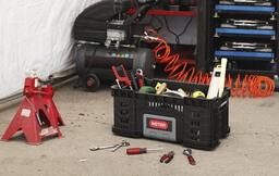 - Дополнительная информация Коробка KETER Gear PRO практична и чрезвычайно прочна. Складные прорезиненные металлические ручки облегчают переноску коробки. Открытый верх коробки позволяет легко просматривать внутреннюю часть коробки и обеспечивает мгновенный доступ. Совместим с Professional Tool Storage System