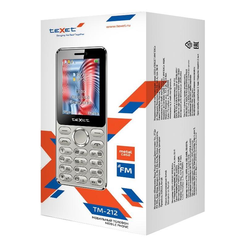 Мобильный телефон teXet TM-212 в сером металлическом корпусе станет оптимальным выбором для человека, который выбирает простые и понятные устройства. Он имеет дисплей диагональю 2.4 дюйма с разрешением 320×240 пикселей мягкую, приятную на ощупь кнопочную клавиатуру. Одновременно модель может использоваться с 2 SIM-картами. В конструкции устройства предусмотрена камера с возможностью записи видеороликов. MP3-плеер, видеопроигрыватель и радиоприемник дополняют возможности сотового телефона teXet TM-212.В органайзер модели входят будильник, калькулятор и календарь. В корпусе устройства предусмотрен фонарик. Кроме компактных размеров модель может «похвастаться» малым весом (70 г), что вдвое меньше массы обычного смартфона. Bluetooth-модуль обеспечивает обмен данными между телефоном и другими устройствами.