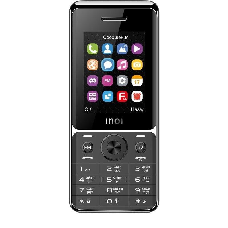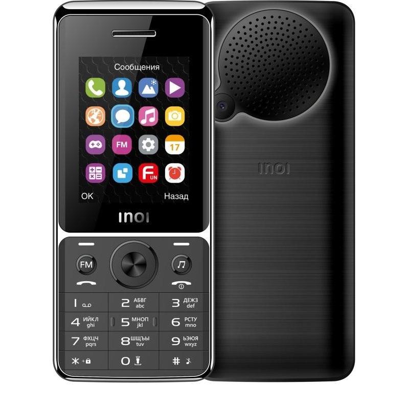 Мобильный телефон Inoi 248М черныйГлавной особенностью является громкий динамик мощностью 2 Вт. Телефон оснащен FM-радио, а также слотом для карт памяти microSD емкостью до 16 ГБ, на которую можно записать музыку. Емкость аккумулятора составляет 2050 мАч.Две SIM-карты. Для удобного разделения рабочих и личных контактов ты можешь использовать одновременно две SIM-карты. Телефон сертифицирован EAC и имеет русифицированный интерфейс меню, а также «Руководство пользователя».