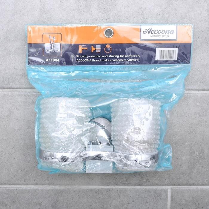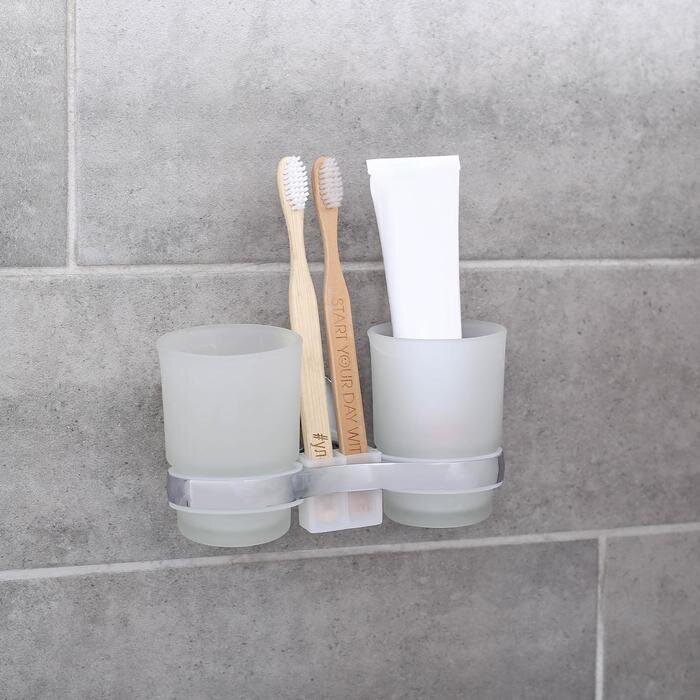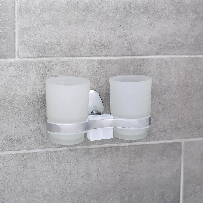 Держатель для зубных щёток настенный, Accoona A11004, 2 стакана, стекло, цвет хром