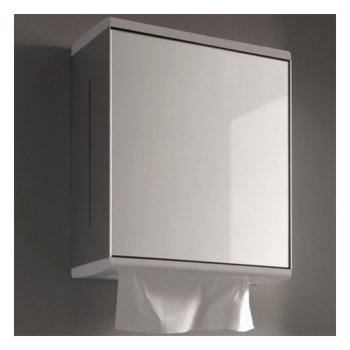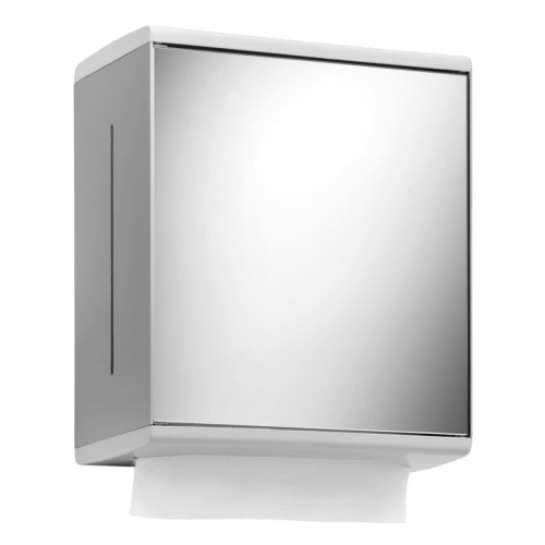 Дозатор бумажных полотенец с зеркальной дверцей.