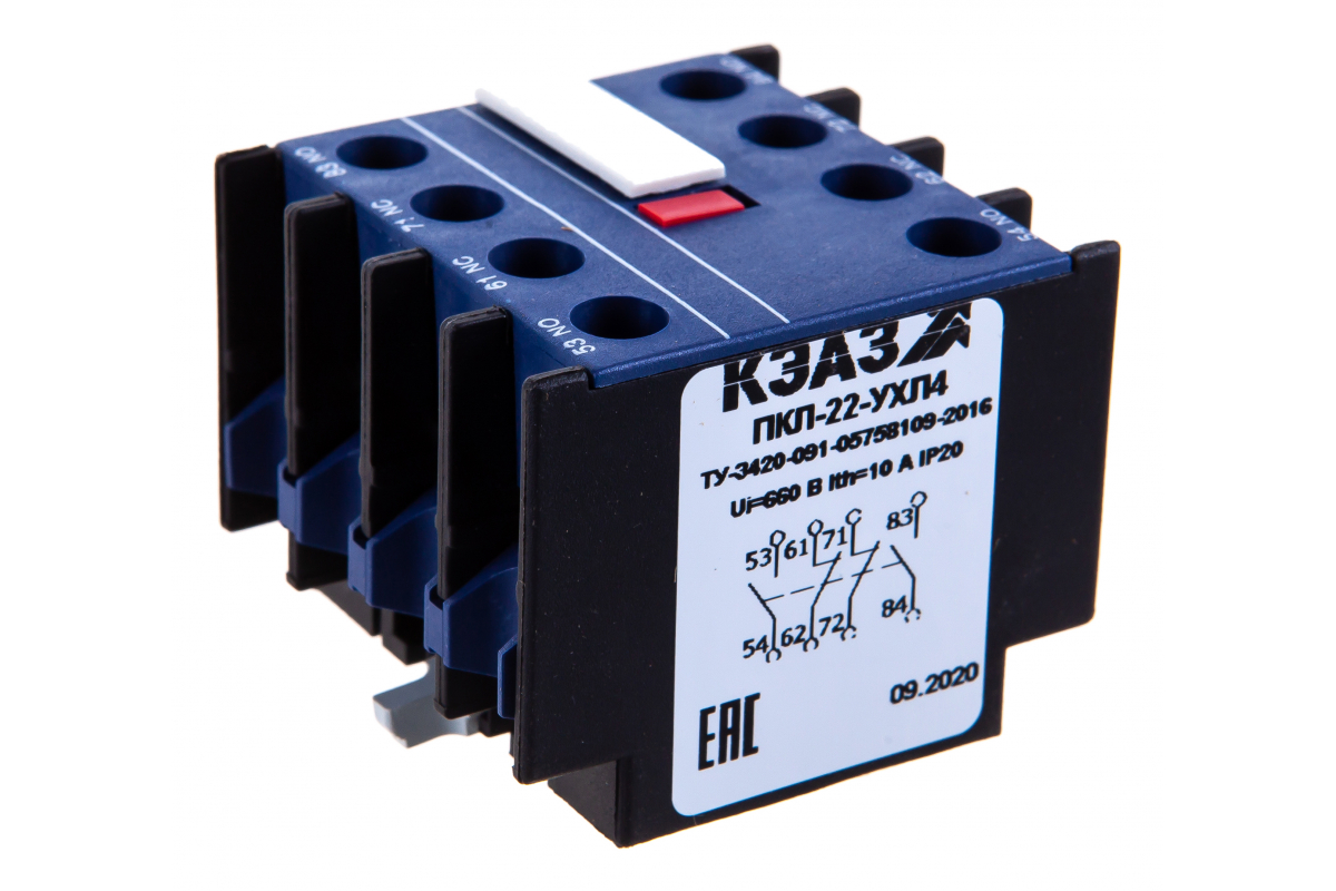 Контактная приставка КЭАЗ ПКЛ-22-УХЛ4-КЭАЗ 110676 служит для расширения возможностей использования контакторов, обеспечивает их дополнительными размыкающими и замыкающими контактами.