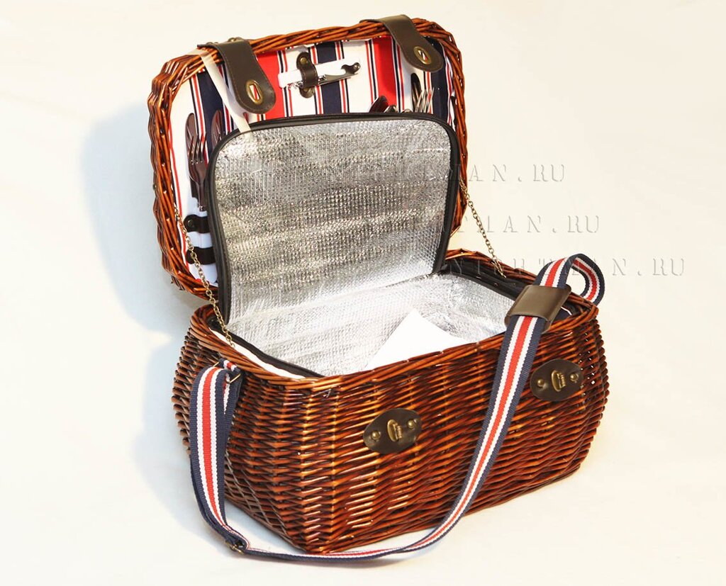 - Комплектация Корзина плетёная (ива), вилки 4шт, ложки 4шт, ножи 4 шт, открывалка 1шт, тарелки керамические 4шт, фужеры стеклянные; - 4шт, салфетки х/б - 4шт. Все столовые приборы металлические с пластиковыми ручками. Полноценное термо-отделение.