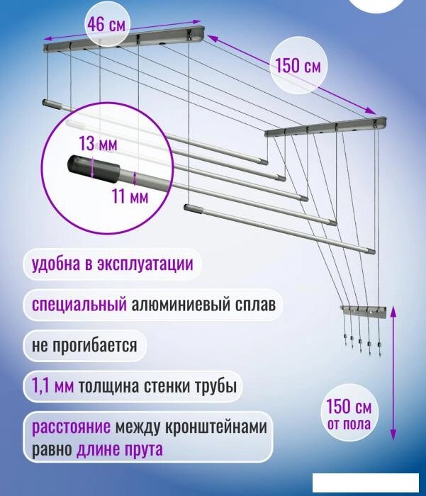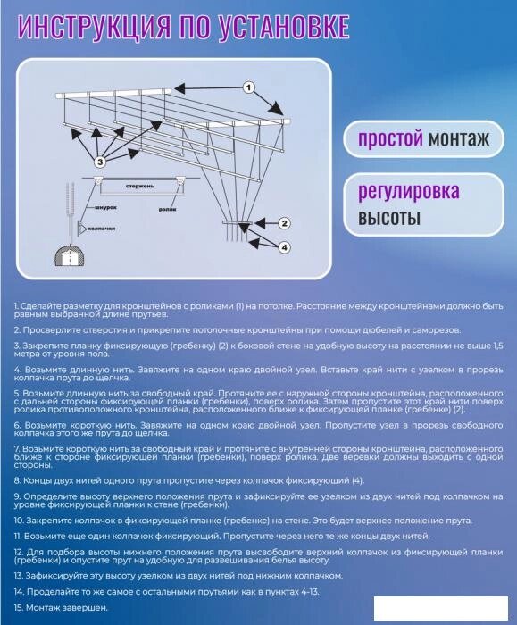 Сушилка для белья с передвижными веревками 50 см.