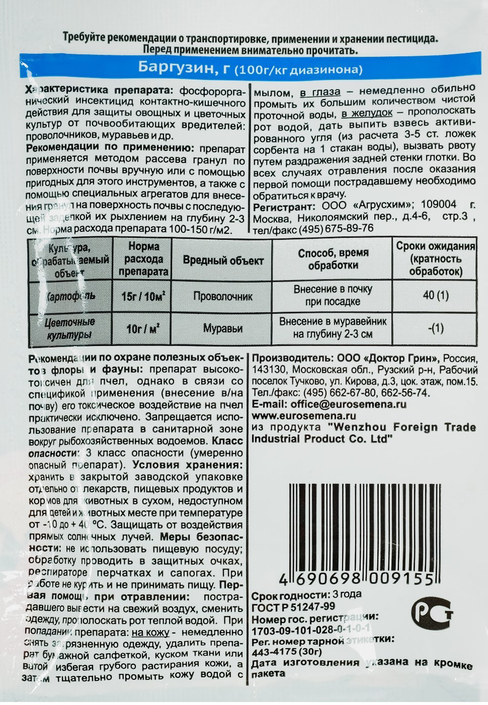 - Применяется против муравьи; проволочники