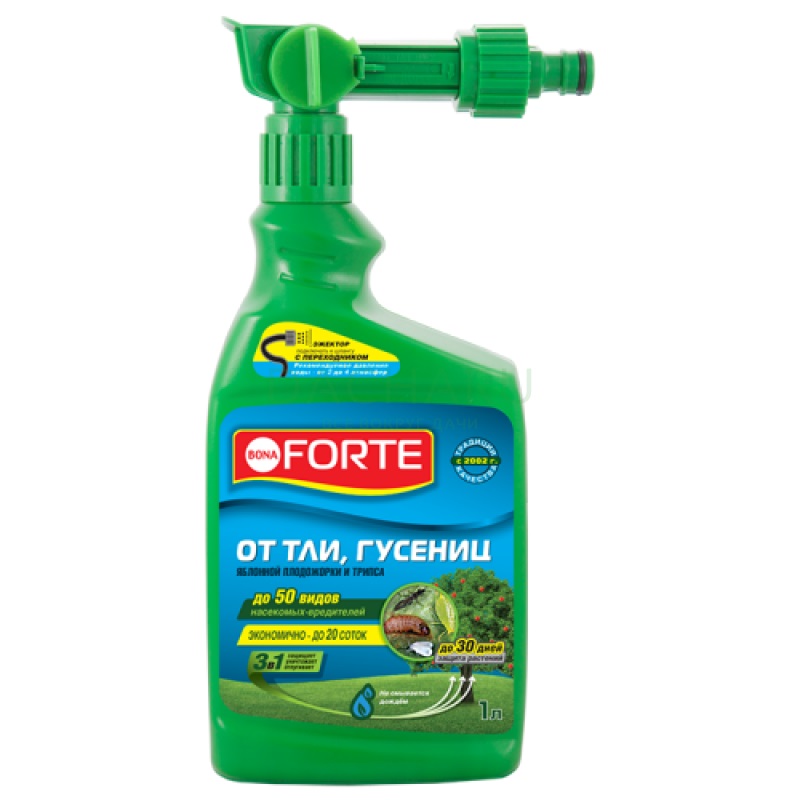 - Применяется против тля; белокрылка; гусеницы; плодожорки; долгоносики; пилильщики