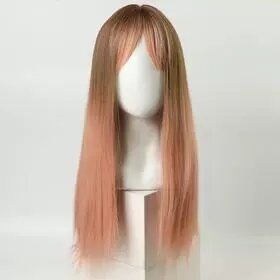 Парик искусственный, с чёлкой, имитация кожи, 60 см, цвет русый/пепельно-розовый