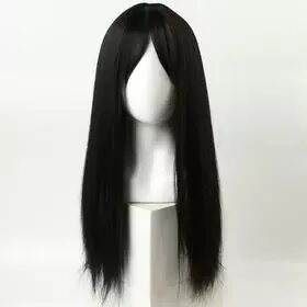 Парик искусственный, с чёлкой, имитация кожи, 60 см, цвет чёрный