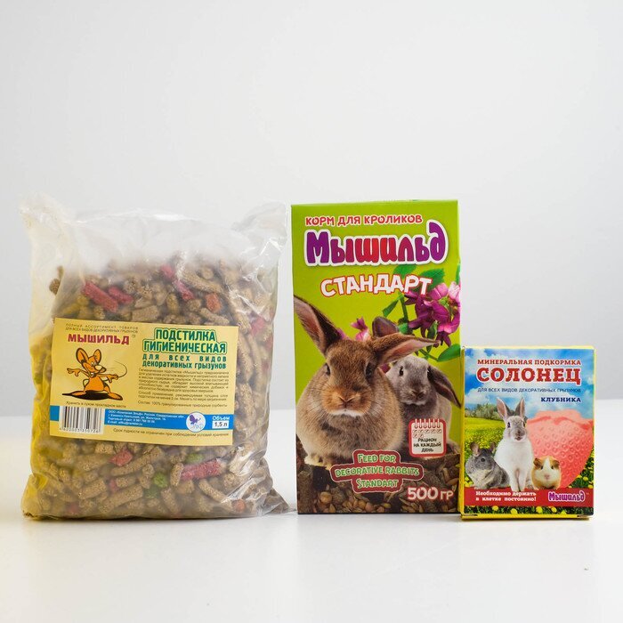 Акция для кролика! Клетка, корм, подстилка, солонец микс цветов