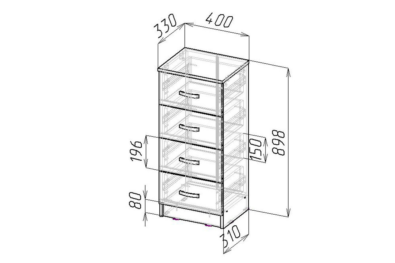 - Размеры (ДxШxВ), в сантиметрах 40х33х90