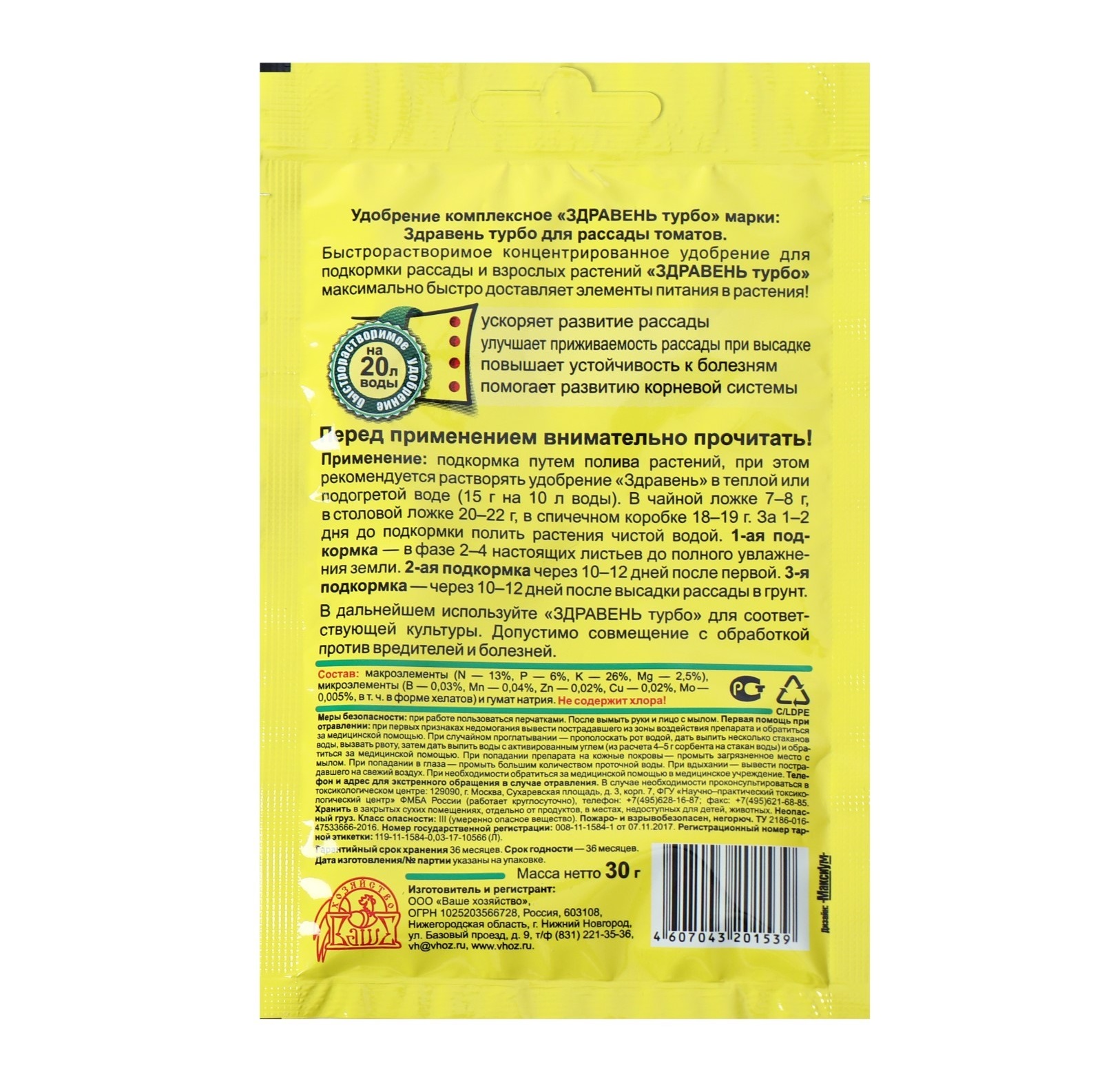 - Способ применения Корневая подкормка — 15 г на 10 л воды. Внекорневая подкормка (опрыскивание) — 10 г на 10 л воды.