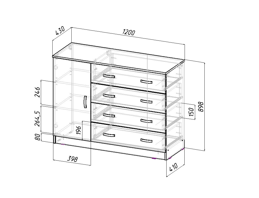 - Размеры (ДxШxВ), в сантиметрах 43х120х90