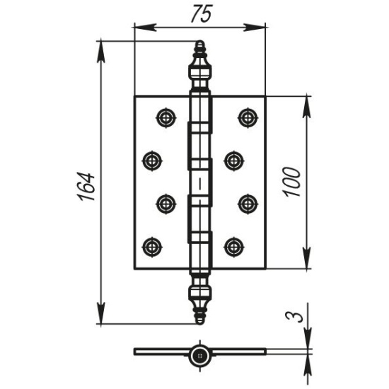 Петля универсальная ARMADILLO 4500B (500-B4) 100x75x3 SG Мат золото, (2шт/УПАК) TD-13854-упак