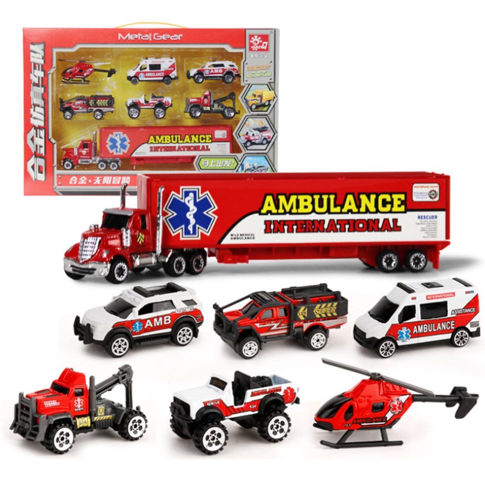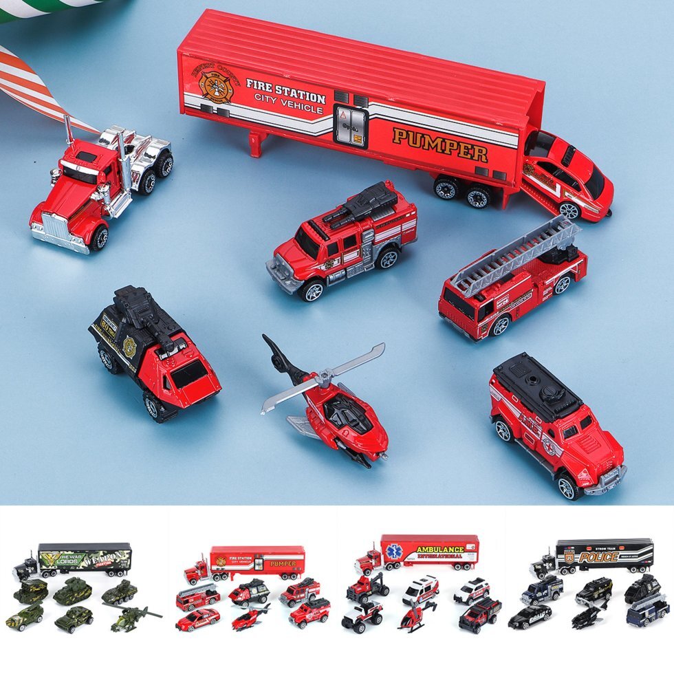 7 Шт. Сплав Литья Под Давлением Грузовик Авто Модель Набор Игрушечных Автомобилей для Детей Рождественский