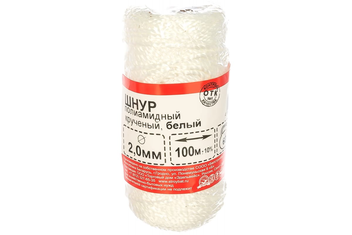 Крученый шнур Стройбат белый, 2 мм х 100 м 18670