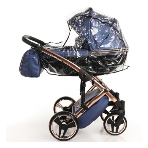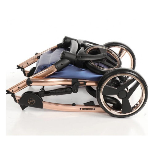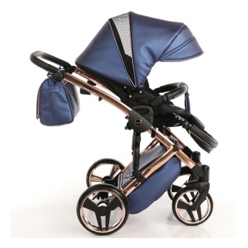 Универсальная коляска 2 в 1 JUNAMA FLUO LINE JDFL-01 (кожа синий/короб черный/рама золото)