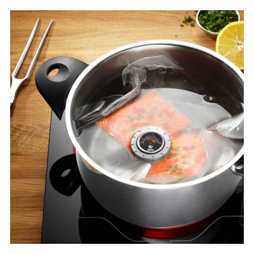 Плавающий термометр для приготовления блюд по технологии су-вид (sous-vide) - блюда готовятся в вакуумном пакете на относительно низкой температуре режимов воды. Термометр СЕГУРО держится на поверхности воды, как поплавок и показывает температуру в течение всего времени варки.