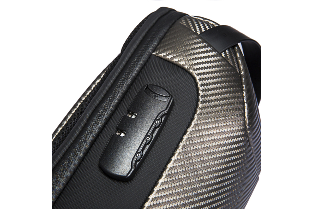 Фактурная глянцевая поверхность сумки отталкивает влагу и устойчива к повреждениям.