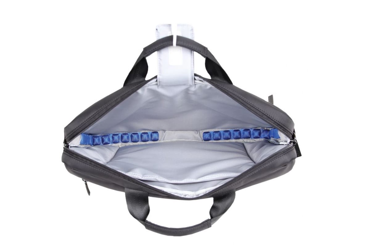 Водоотталкивающий материал сумки защищает содержимое от намокания. А противоударная подушка сохраняет технику при ударе.
