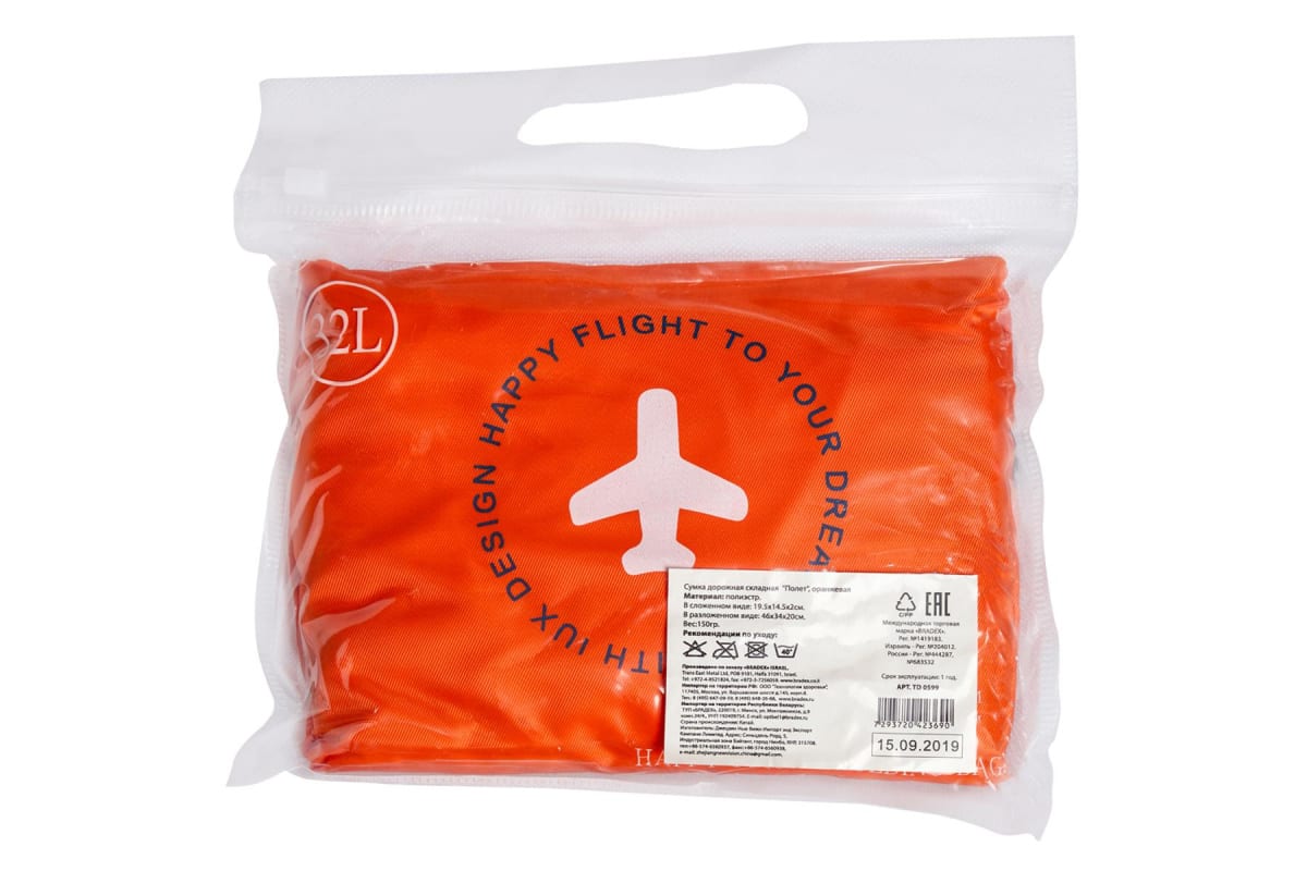 Дорожная складная сумка BRADEX Полет оранжевая TD 0599 подходит в качестве ручной клади.