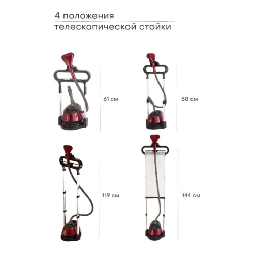 Отпариватель PIONEER SS177Напольный отпариватель Pioneer SS177 мощностью 1800Вт с с сенсорным управлением, электронным дисплеем и базой станет незаменим помощником всем, кто хочет выглядеть с иголочки. Благодаря непрерывной подаче пара температурой 98 гр. и производительности парообразования 30-40 гр.мин он позволяет идеально разглаживать одежду в 9 различных режимах. Для дополнительного упора при вертикальном глажении, отпариватель оборудован шторкой. В зависимости от типа одежды и роста пользователя можно регулировать высоту расположения вешалки с помощью телескопической трубки (61, 88, 119 и 144 см). Наша модель имеет съемный бойлер в 1350 мл и обладает следующими преимуществами: отпаривание одежды, используя плечики; отпаривание с помощью щетки для деликатных тканей, для очистки ткани от шерсти или ворса или для проглаживания стрелок на брюках; отпаривание мягкой мебели и подушек, вертикальная глажка штор, причем, не снимая их с карниза; в комплекте поставляется перчатка для предотвращения ожогов.