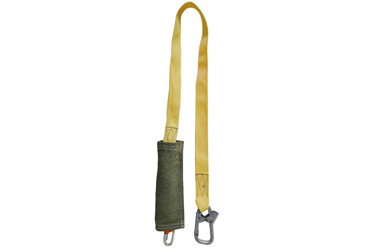 Строп ООО-СИЗ аА+Кс огнеупорная лента 1779 представляет собой страховочный строп, выполненный из арамидной ленты с амортизатором в чехле из огнеупорного материала, монтажным и соединительным карабином.