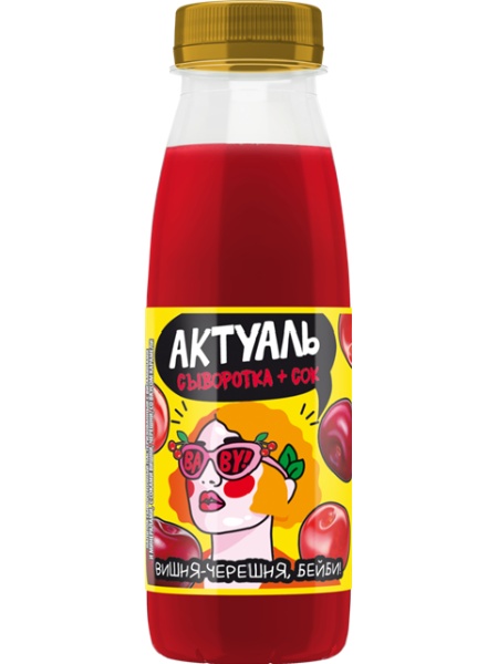 - Состав восстановленная молочная сыворотка, наполнитель (соки вишни и черешни концентрированного; вода; краситель – каротины; ароматизатор; стабилизатор – пектины; регуляторы кислотности – аскорбиновая и яблочная кислоты), сахар, стабилизатор – пектины, регуляторы кислотности – лимонная кислота, витаминно-минеральный премикс , консервант – сорбат калия, ароматизатор