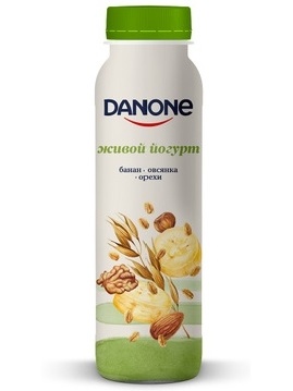 - Состав нормализованное молоко, фруктовый наполнитель (сахарный сироп, банан, овес, миндаль, грецкий орех, фундук, кукурузный крахмал, концентрированный сок лимона, ароматизатор натуральный, краситель – каротин, загуститель – пектин), сахар, йогуртовая закваска