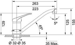 • Особенности поворотный излив, Керамический картридж....., рычаг управления - сверху