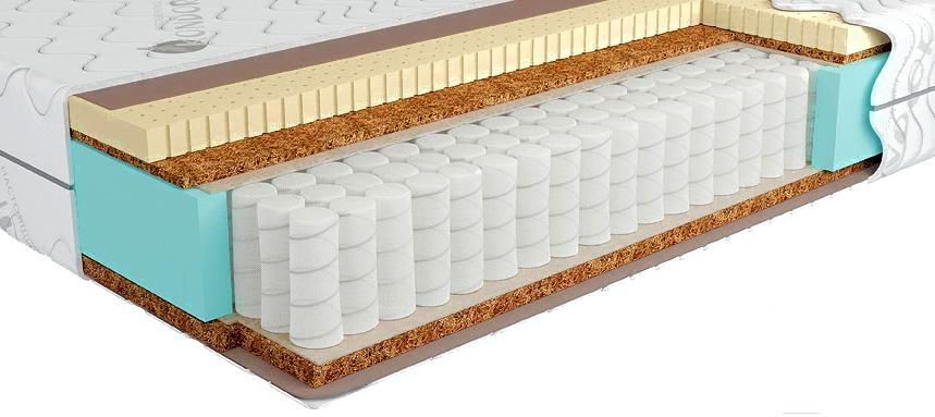 • Материалы кокосовая койра (10 мм - верхняя сторона матраса, 20 мм - нижняя сторона матраса), латекс (30 мм - верхняя сторона матраса)