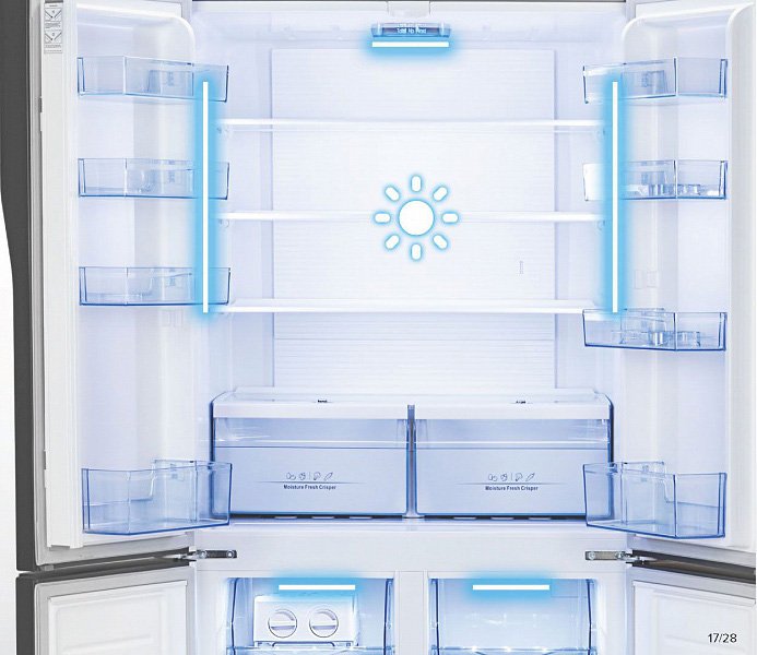 • Дополнительные функции Суперзаморозка (SuperFrost), Режим «Отпуск», Защита от детей, Генератор льда