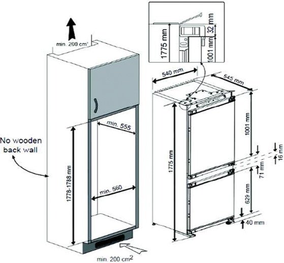 Встраиваемый, компоновка морозильник внизу, No Frost, класс энергопотребления A++, объем холодильной камеры 167 л, объем морозильной камеры 69 л, зона свежести (BioFresh), электронное управление.