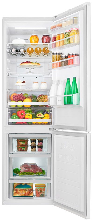 Отдельно стоящий, двухкамерный, компоновка морозильник внизу, No Frost, класс энергопотребления A++, объем холодильной камеры 246 л, объем морозильной камеры 93 л, зона свежести (BioFresh), электронное управление, встроенные ручки, дисплей.