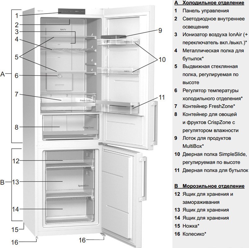 Отдельно стоящий, двухкамерный, компоновка морозильник внизу, No Frost, класс энергопотребления A++, объем холодильной камеры 221 л, объем морозильной камеры 85 л, зона свежести (BioFresh), электронное управление, встроенные ручки, дисплей.