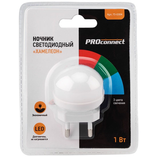 Многоцветный светодиодный ночник-светильник PROconnect "Хамелеон" для мягкого ночного освещения, 220 В 75-0304