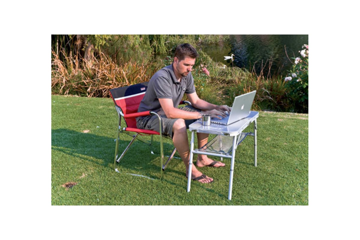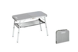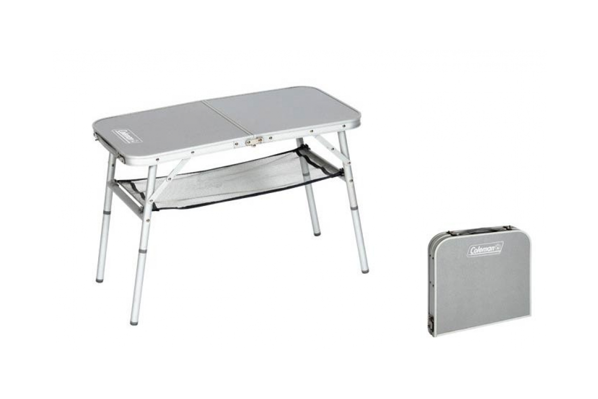 Складной стол COLEMAN Mini camp table 204395 прекрасно подходит для использования как в походах, так и на дачном участке. За столом могут комфортно разместиться два человека. Изделие имеет две рабочие поверхности - основная столешница и полка из сетки. Стол легко и быстро раскладывается и складывается в кейс. Материал каркаса - легкий и прочный алюминий.