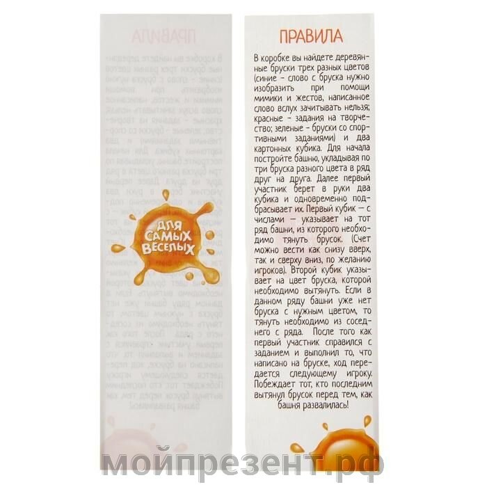 Настольная игра «Падающая башня. Для самых веселых» с фантами, 54 бруска