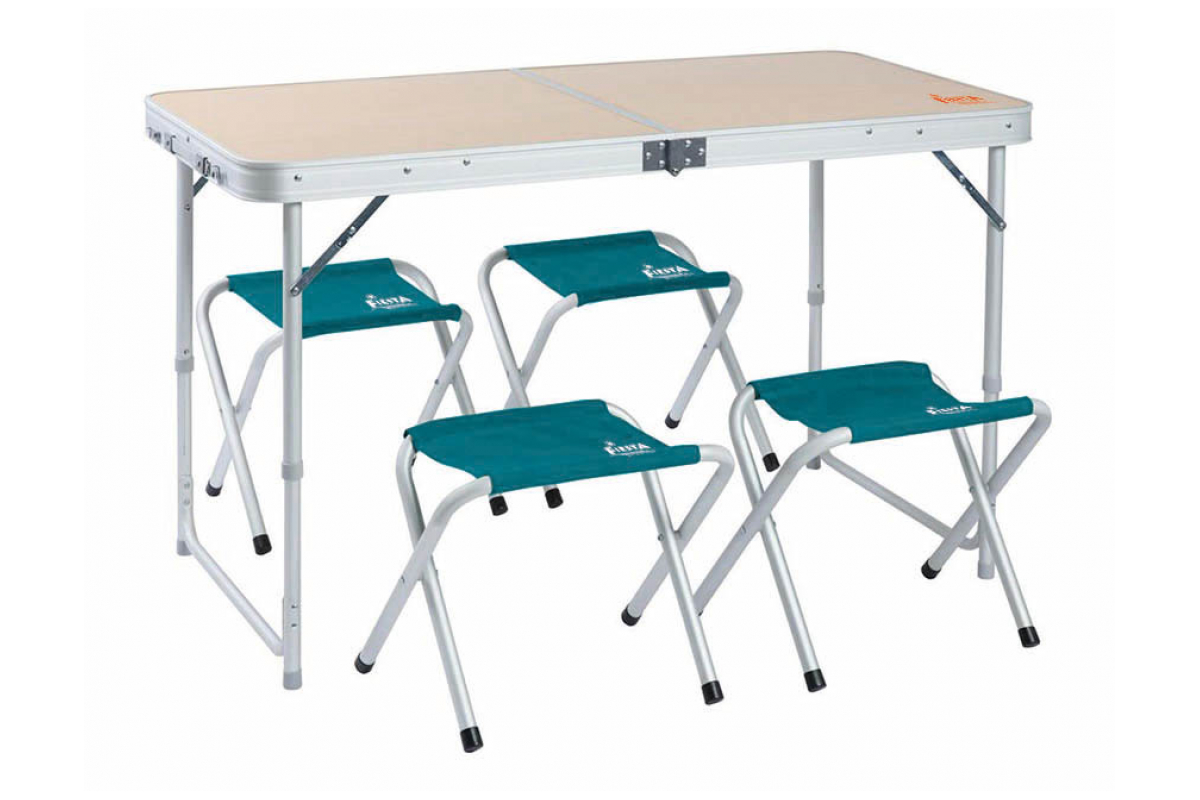 Складной стол Fiesta Convert +4 табурета цвет синий FC-001 можно использовать на природе, на даче или в загородном доме.