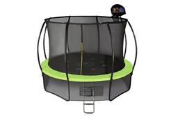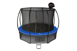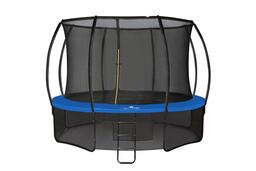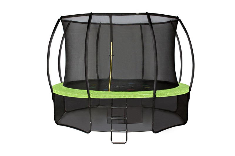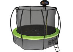 Комплектация рамная конструкция, защитный мат, защитная сеть, нижняя защитная сеть, лестница, баскетбольное кольцо, мяч, насосВход на батут Zip + 3xClip (молния + три клипсы)Покрытие рамы три слоя защиты рамы (двойная оцинковка и слой порошковой краски)Соединение труб фиксатор Pop PinОснование батута 4 W-ногиСоединительное крепление рамы T-Master LockВерхнее крепление сетки жесткая фиксация, металлический ободНижнее крепление сетки MAX-LOCKРасположение верхней защитной сети внутреннееБаскетбольное кольцо с пружинным механизмомЗащитный мат двухсторонний (Double), зеленый узор/синийДополнительная гарантия 5 лет на сквозную коррозию