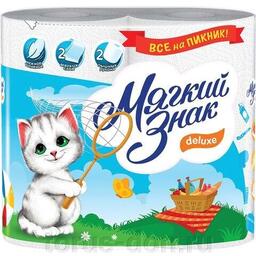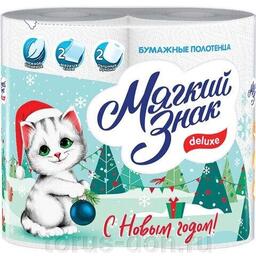 Полотенца бумажные бытовые, спайка 2 шт., 2-х слойные (2х10 м), МЯГКИЙ ЗНАК Deluxe, белые, С40