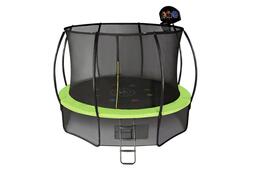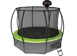 Комплектация рамная конструкция, защитный мат, защитная сеть, нижняя защитная сеть, лестница, баскетбольное кольцо, мяч, насосВход на батут Zip + 3xClip (молния + три клипсы)Покрытие рамы три слоя защиты рамы (двойная оцинковка и слой порошковой краски)Соединение труб фиксатор Pop PinОснование батута 4 W-ногиСоединительное крепление рамы T-Master LockВерхнее крепление сетки жесткая фиксация, металлический ободНижнее крепление сетки MAX-LOCKРасположение верхней защитной сети внутреннееБаскетбольное кольцо с пружинным механизмомЗащитный мат двухсторонний (Double), зеленый узор/синийСертификат качества CE+GS