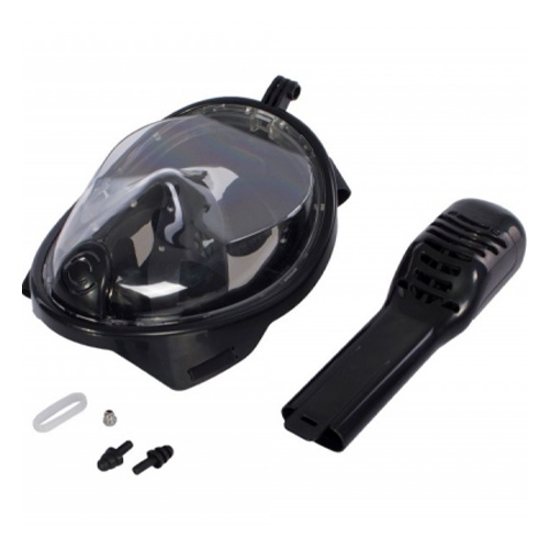 Преимущества: ● Полнолицевая маска для свободного дыхания носом и/или ртом. ● Циркуляция воздуха, предотвращает запотевание маски. ● Панорамный обзор 180°. ● Безопасный и легкий пластик вместо стекла. ● Легкость снятия / надевания благодаря эластичному текстильному ремешку, который не путается в волосах. ● Специальный клапан в трубке, предотвращающий попадание воды в маску. ● Крепление для камеры «Gopro». ● Беруши в наборе.