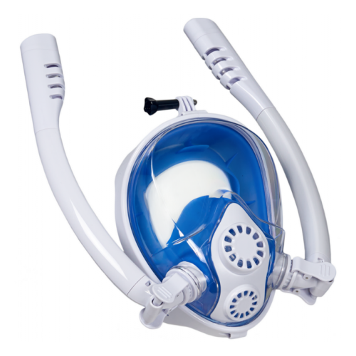 Полнолицевая маска - ваш незаменимый аксессуар для снорклинга! Она оснащена сразу двумя трубками, с которыми вы сможете дышать под водой так же свободно, как и без маски. Благодаря дополнительной трубке вы получаете больше воздуха по сравнению с другими моделями, а значит сможете наслаждаться снорклингом более длительное время. Трубки можно расположить под любым наклоном. Угол обзора 180 градусов позволит вам рассмотреть всех морских обитателей. Маска выполнена из пластика, который намного легче и безопаснее стекла. Эластичные ремешки легко надеваются и не путаются в волосах.