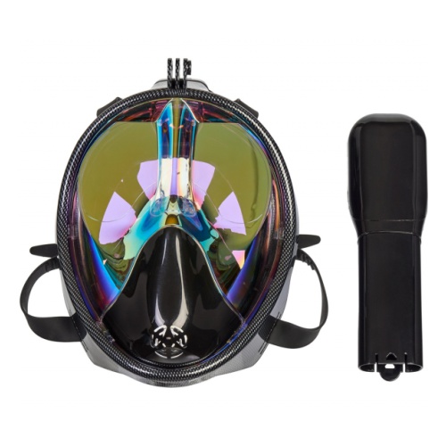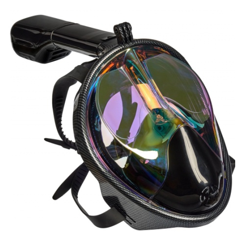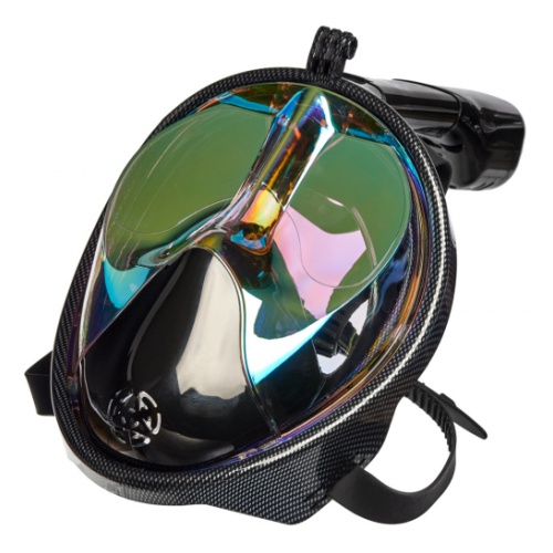 Преимущества: Маску легко снимать и надевать благодаря клипсам. Широкий угол обзора не запотевает клапан в трубке от попадания воды крепление камеры GoPro система свободного дыхания