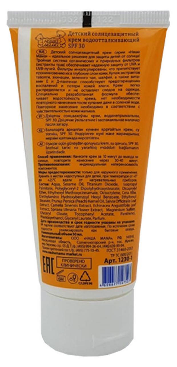 Крем солнцезащитный детский «Наша Мама» водоотталкивающий SPF 30, 50 г