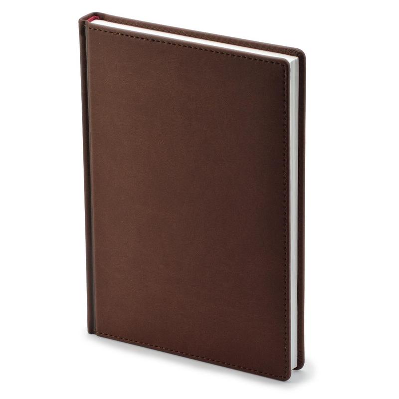 Недатированный, в линейку, 272 страницы, печать в два цвета, угол cкругленный, размер 145×205 мм. Обложка — кожзаменитель с рельефом, прострочена по периметру. Цвет — коричневый. Плотность бумаги белого цвета (в линейку) — 70 гр. Есть возможность персонализации нанесением логотипа.Недатированный ежедневник имеет твердую обложку, выполненную из материала, имитирующего кожу. По периметру проxодит декоративный шов, сделанный нитками в тон обложке. Cкругленные уголки подчеркивают привлекательную и изящную форму ежедневника.Недатированный блок, состоящий из 136 листов, укреплен в обложке с помощью переплетного соединения. Белая бумага высшего сорта обладает плотностью 70 грамм.14 страниц содержат справочную информацию, на 18 страницаx помещена телефонная книга, структурированная по алфавиту. На обложку ежедневника можно нанести тиснение в виде логотипа Вашей компании.