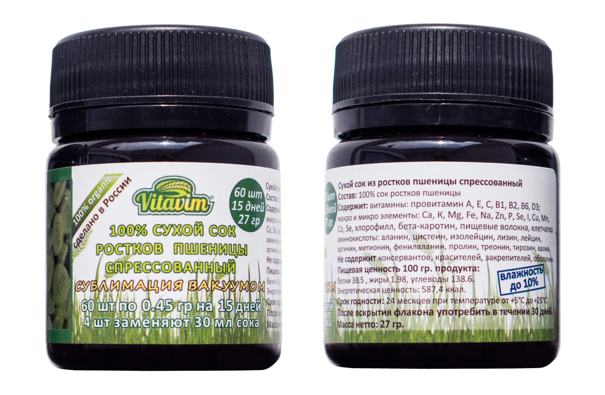 - Состав 100% натуральный сухой сок ростков пшеницы