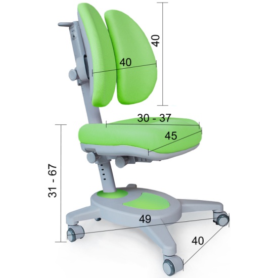 Кресло Mealux Onyx Duo Y-115 KZ1. Кресло универсальное (подходит для стандартных столов и для столов с регулировкой высоты).2. Эргономичное кресло Onyx Duo сочетает в себе высокое качество, эргономичность и стильный дизайн. Спинка и сиденье кресла имеют эргономичную форму, которая обеспечивает поясничный упор и способствует формированию правильной осанки ребенка.3. Отличительная особенность кресла Onyx Duo - двойная конструкция спинки. В результате спинка кресла максимально плотно прилегает к спине ребенка. Спинка кресла регулируется по высоте. Установленная высота спинки фиксируется специальным винтом. На несущей трубе изображена шкала по которой можно установить высоту спинки в соответствии с ростом ребенка.4. Сиденье кресла регулируется по высоте и глубине. Конструкция кресла разработана с учетом всех анатомических особенностей ребенка, также есть выемка, которая увеличивает глубину кресла для большего примыкания к спине ребенка и обеспечения поясничного упора.5. Спинка кресла регулируется по высоте, установленная высота надежно фиксируется специальным винтом. На несущей трубе есть ростовая разметка для того, чтобы отрегулировать высоту спинки в соответствии с ростом ребенка.6. Данное кресло не опрокидывается, так как вся конструкция держится на широком, прочном основании. На основании кресла зафиксированы 5 колес.7. Нейлоновые колесики оснащены механическим стопорами, а также плавно скользят по напольному покрытию, не повреждая его. Максимально допустимая нагрузка на кресло - 80 кг.8. На несущей трубе размещена удобная ручка для легкого перемещения кресла по комнате.