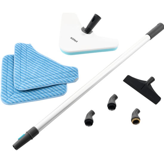 Паровая швабра Kitfort КТ-1013 (2 в 1)Паровая швабра «2 в 1» Kitfort KT-1013 - универсальное устройство, которое поможет избавиться от пыли и грязи с помощью мощной струи пара, а также продезинфицирует обрабатываемую поверхность. Уборка с ней будет проходить быстро и легко.Прибор предусматривает наличие ручного модуля, который удобно использовать с насадками. Регулятор уровня пара позволяет настраивать интенсивность работы устройства. Это очень удобно при очистке разных типов поверхностей с разным уровнем загрязнения.Тряпка из микрофибры легко крепится к щётке паровой швабры за счёт своих липучек. Она не будет сползать во время мытья пола.Паровая швабра оснащена резервуаром для воды ёмкостью 250 мл, что позволяет производить непрерывную уборку до 10-25 минут в зависимости от выбранного уровня подачи пара.Во время работы швабры вода из резервуара подаётся в бойлер помпой (водяным насосом). Вода не просто кипит в бойлере, а равномерно подаётся помпой малыми порциями и мгновенно превращается в пар, поэтому для паровой швабры не нужны чистящие средства.В комплекте со шваброй идут: две тряпки из микрофибры, нейлоновые щётки, латунная щётка, струйная насадка, скребок. Удлинительная трубка легко отсоединяется, поэтому для хранения швабры у вас не возникнет проблем.